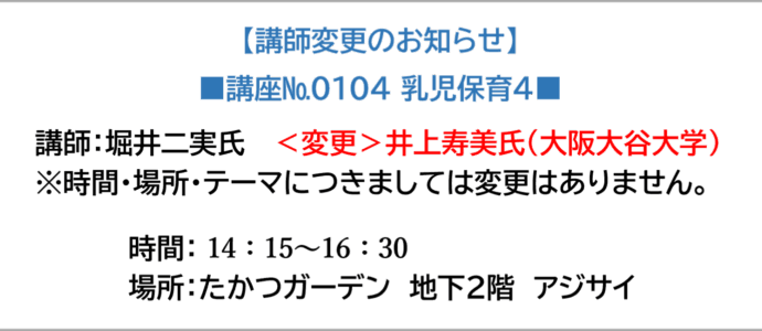 - ■ 特別講座8及び保育士等キャリアアップ研修乳児保育分野(阿部和子氏) 日程変更のお知らせ